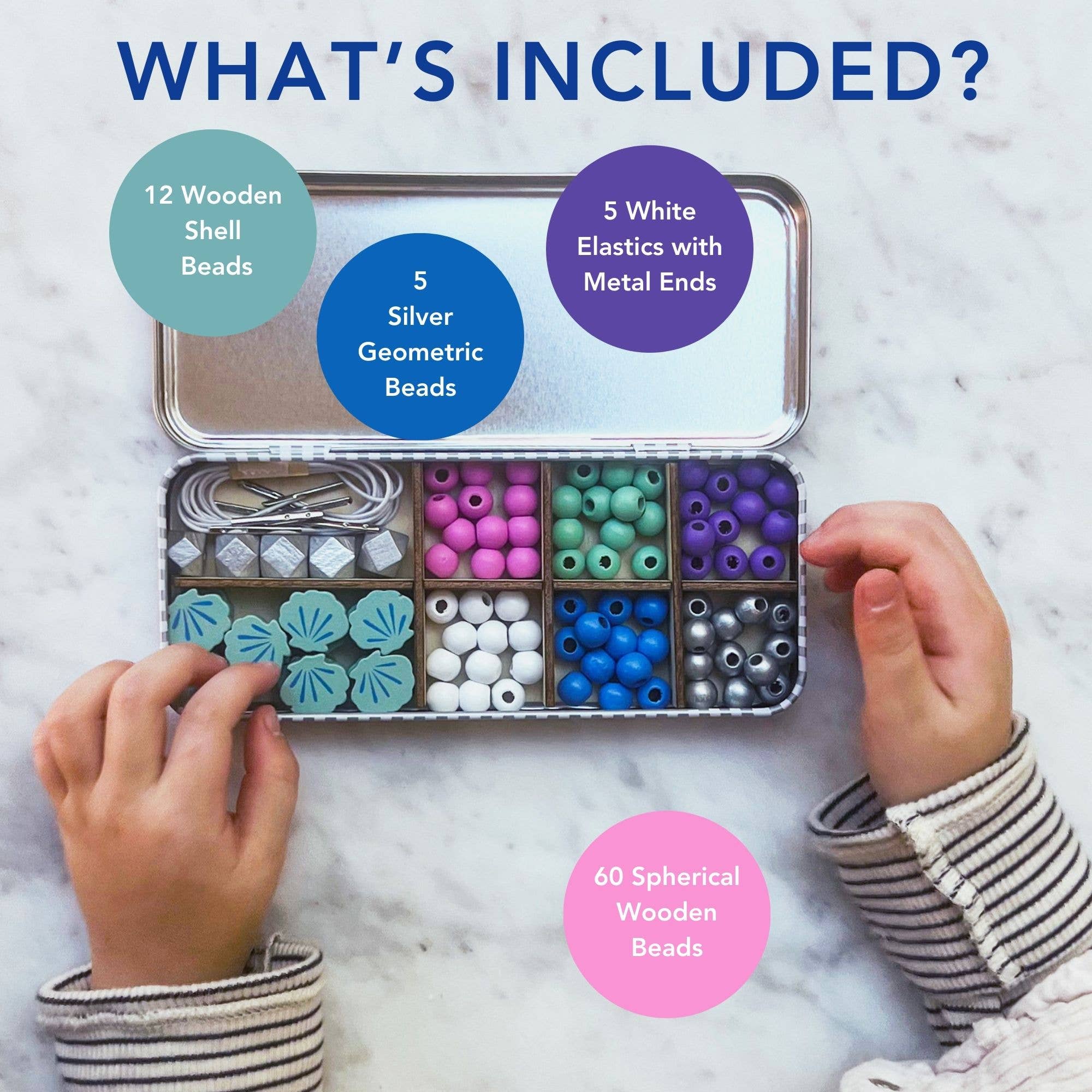 Containing enough beads to make 5 bracelets, a selection of shell, geometric & spherical beads await. The elastic comes with metal ends to aid the beading process for young children.